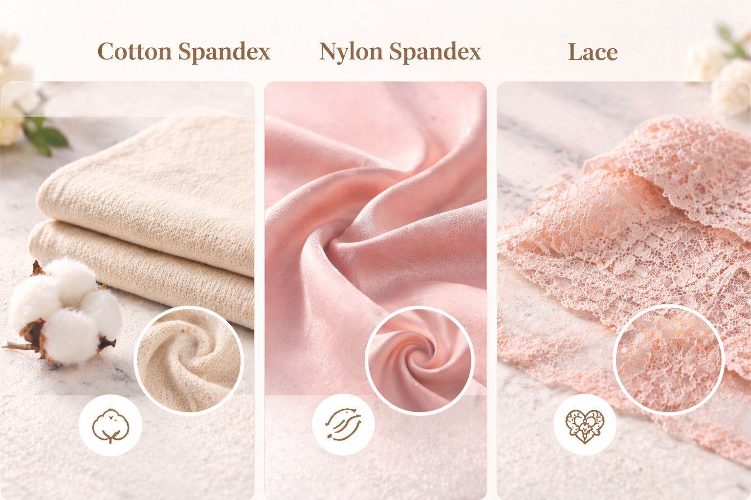 Cotton spandex-various fabrics are available. Including organic cotton, full combed cotton, Pima cotton, etc. All of these are ideal choices for nursing bras
